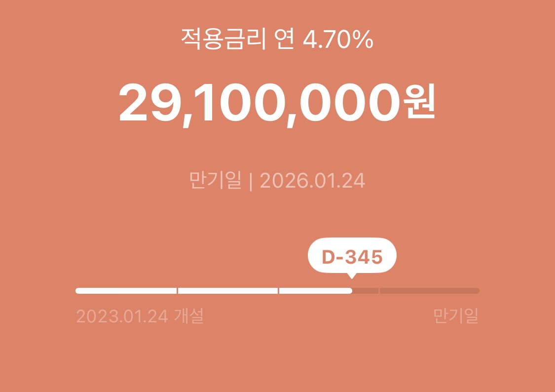 당시 코로나 기간이기도 하고 적금 금리가 조금씩 올라가고 있던 시기였던 터라 연 4.7% 금리로 3년 만기 적금을 가입했습니다. 25년 2월 기준으로 무려 연 4.7%의 적금 금리를 주는 은행을 찾아보기 어렵기에 가입 기간을 더 길게 할 걸 후회가 됩니다. 매월 100만 원의 금액을 정기적으로 입금하고 여유자금이 있을 때 추가납입 기능을 이용하여 입금한 결과 현재 29,100,000원이 적금 계좌에 있습니다.